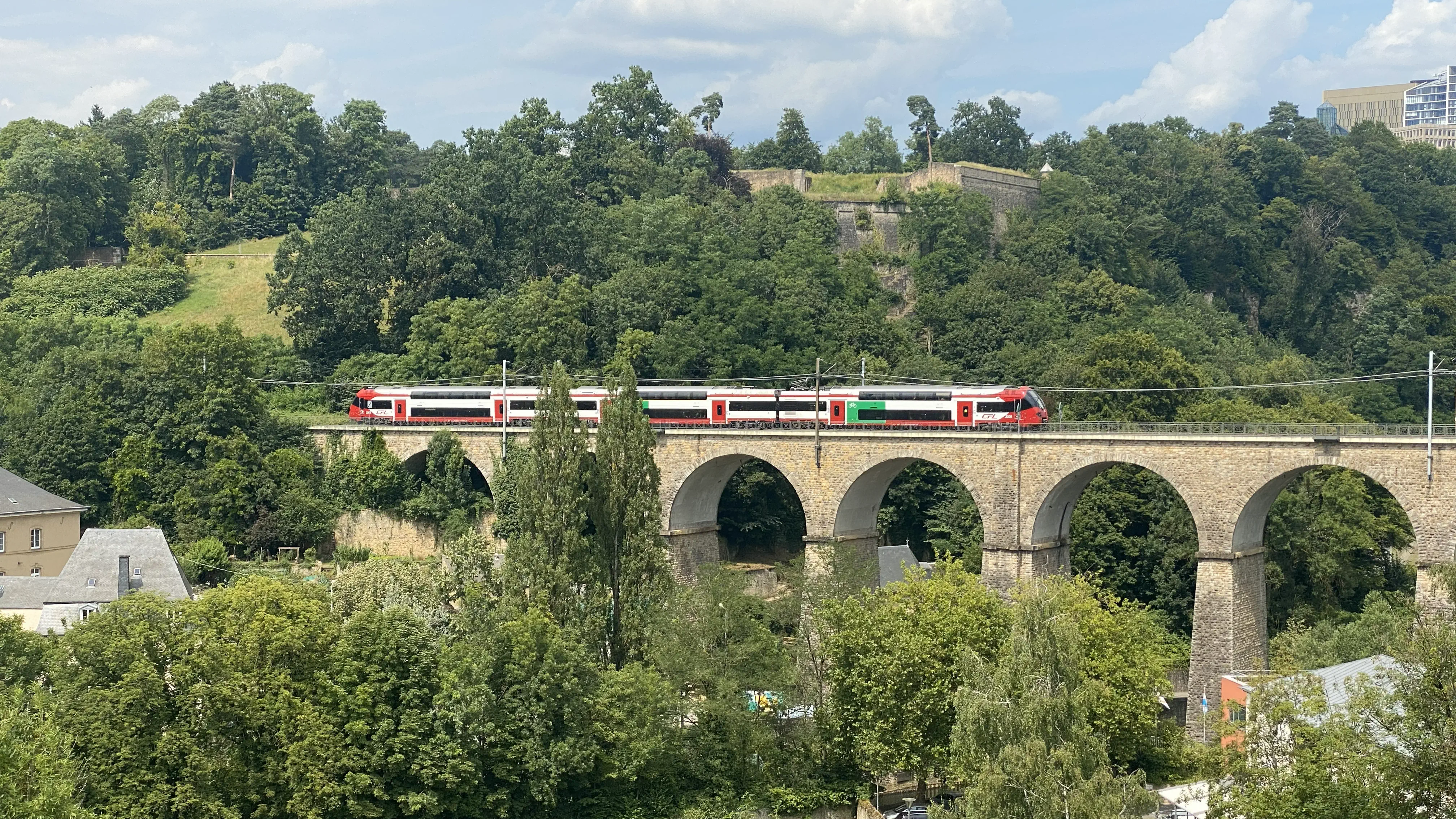 Once a day, there is also a direct train of CFL from Düsseldorf to Luxembourg. On the section Düsseldorf – Koblenz, this is operated as an IC long-distance train of DB.